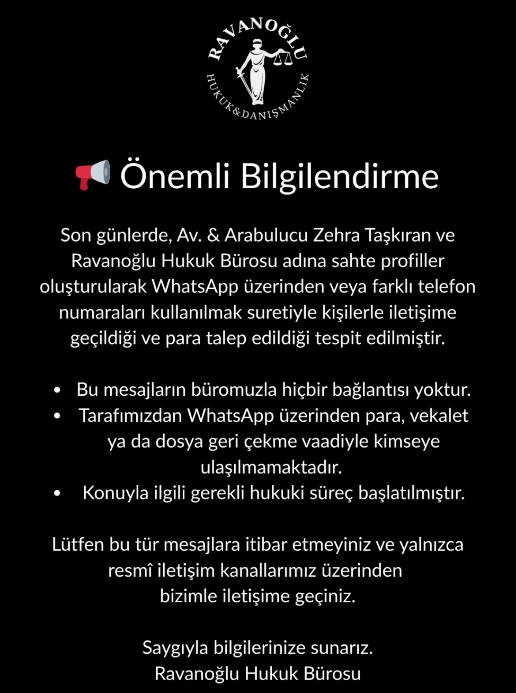 Bu sitede paylaşılan bilgiler yalnızca bilgilendirme amaçlı olup, Türkiye Cumhuriyeti Barolar Birliği’nin ilgili düzenlemeleri uyarınca reklam, teklif, hukuki öneri veya danışmanlık teşkil etmez.